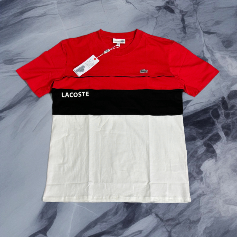 เสื้อLacosteแถบสีประดับขาว/ดำ