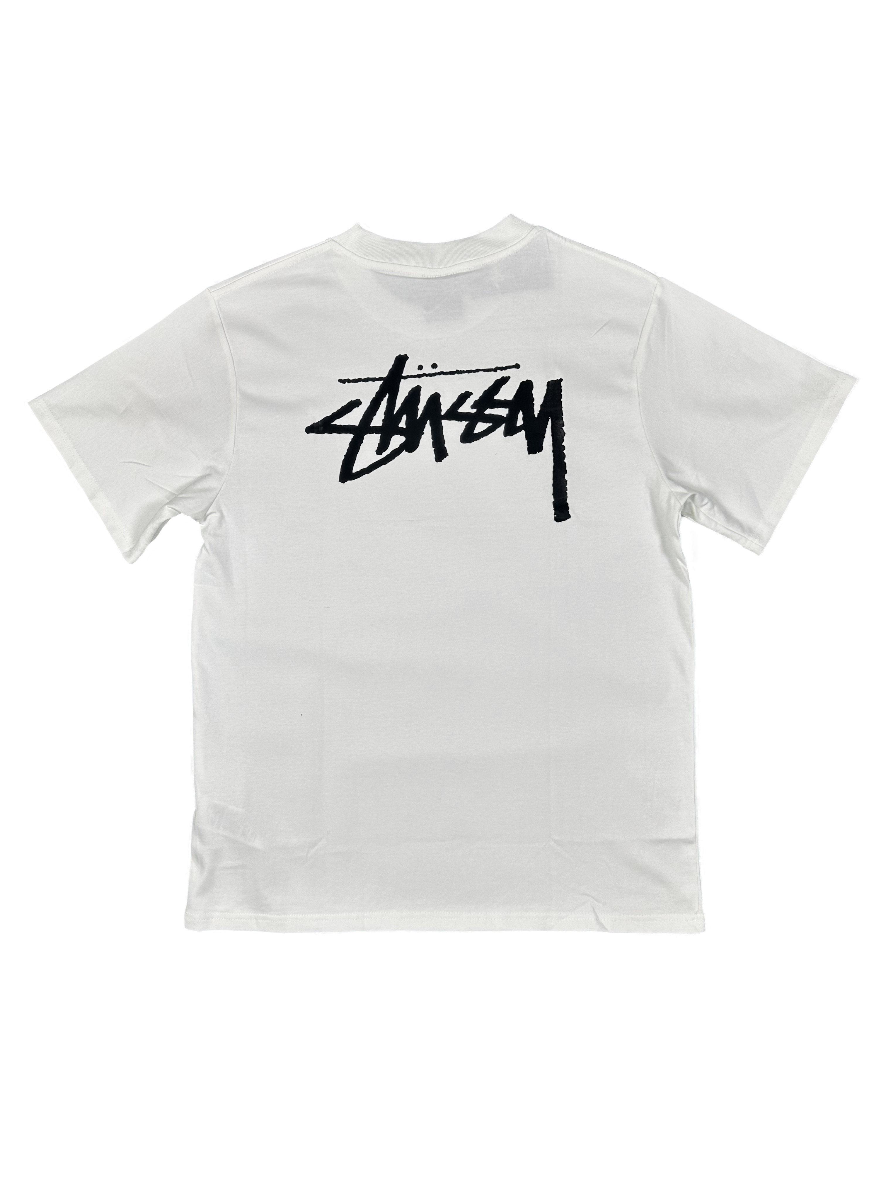 เสื้อSTUSSY มีโลโก้ที่หน้าอกซ้ายและโลโก้ขนาดใหญ่ที่หลัง